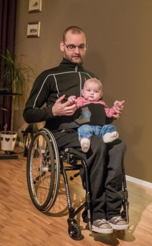 Ein flexibler Gurt hilft rollstuhlnutzenden Eltern,